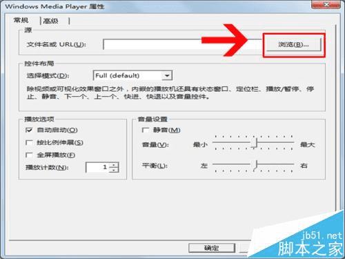 7、Windows media player窗口里点击浏览按钮,找到视频文件所存放的位置,点击应用然后确定。