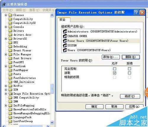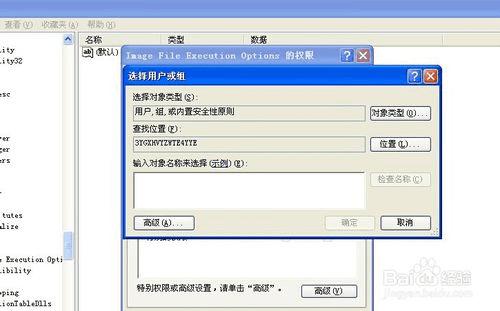4、右键点击Image File Execution Options,在选中菜单中点击“权限”选项,跳转到权限维护菜单