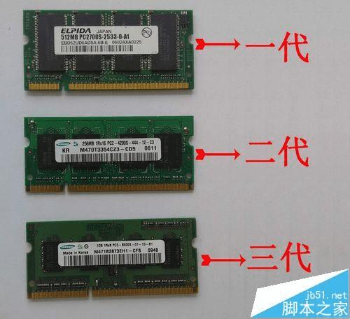 DDR1,DDR2,DDR3内存条(DDR是Double Data Rate双倍速率同步动态随机存储器的英文缩写)就是俗称的一二三代内存条。这三种内存条工艺不同,接口不同,性能不同,互不兼容。要区分它们,也不难。