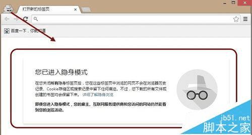 4、下面,我们介绍更保护隐私的方法。可以每次打开重要网页时,使用隐身方式。启用隐身访问模式,可以避免在浏览历史记录中出现,也不会出现在Chrome首页,或者新标签页的缩略图中。