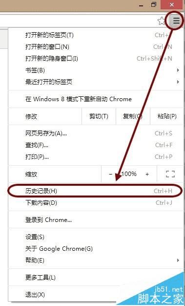 5、除此之外,我们还可以打开Chrome选项中的历史记录。或者按下快捷键Ctrl+H