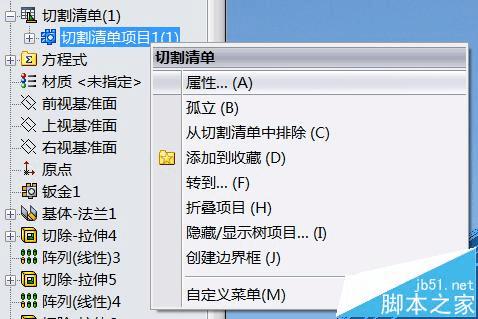 3、点切割清单前面的“+”号,在切割清单项目上面右击一次,点击属性