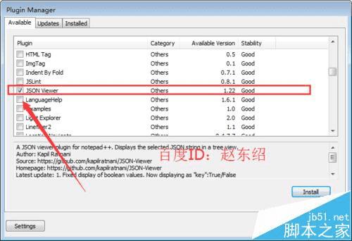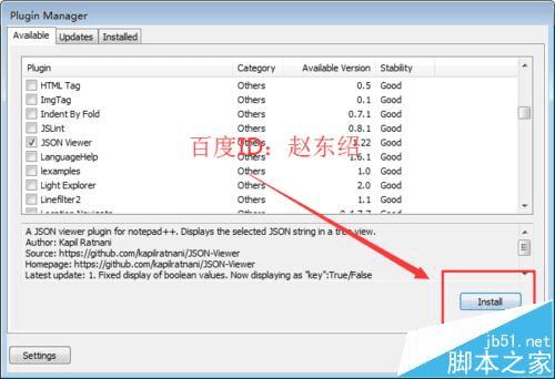 5、这时候会弹出“Plugin Manager”对话框,在里面找到“JSON Viewer”并打上对勾