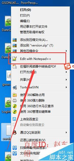 2、右键单击该txt文件,在右键菜单中选择使用Notepad++,打开