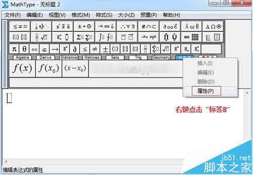 3、对已经分好类的可以不用进行自定义,对于后面两个标签我们将常用公式保存的地方一般是在“标签8”和“标签9”中,右键点击“标签8”,选择“属性”。