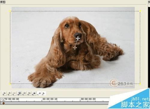 3、图片中狗鼻子附近有两个十字插,红的这个十字插对应着左下角起始位置,鼠标按住可以移动,方框也是可选的,可以变大变小,把它改成图二的样子,就成图片移动并变大,最后看着小狗的眼睛了。