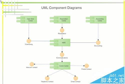 描述代码构件的物理结构以及各种构建之间的依赖关系。用来建模软件的组件及其相互之间的关系,这些图由构件标记符和构件之间的关系构成。在组件图中,构件时软件单个组成部分,它可以是一个文件,产品、可执行文件和脚本等。