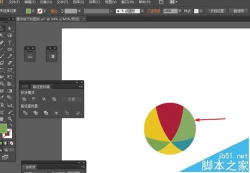 3、接着选择路径和圆形到窗口—路径查找i器—点击分割,如图所示