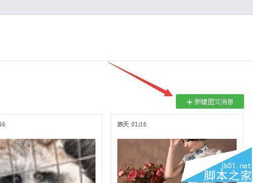2、点击左侧菜单栏的素材管理,再点击右侧的 新建图文
