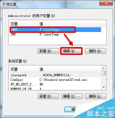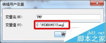 5、将变量值改为C:\WINDOWS\Temp,再单击确定