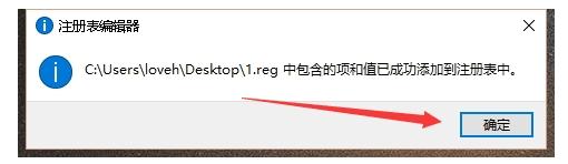7、看到这个对话框就代表我们成功的把 1.reg 文件导入 注册表中