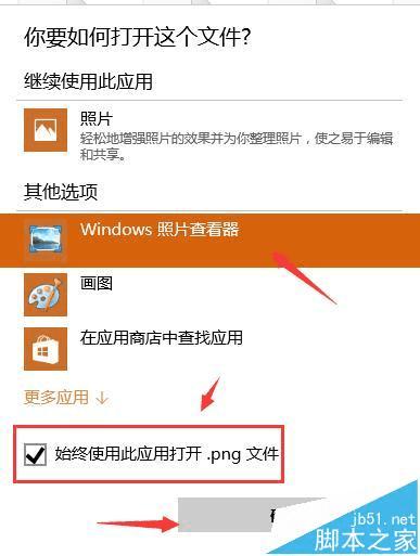 3、在弹出的对话框中,我们选择 Windows 照片查看器, 勾选下方的 始终使用此程序打开... ,然后点击 确定