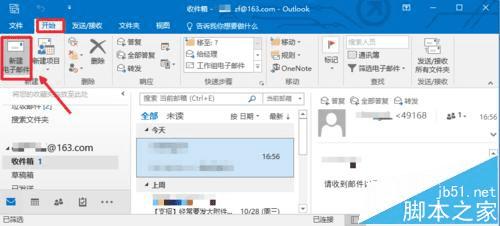 1、打开Outlook,然后点击开始中的新建电子邮件,如图所示操作。