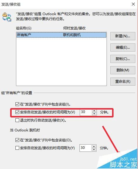 8、我们确保这里的安排自动发送和接收是开启状态,这个时间可以设置。最后我们点击发送邮件按钮,这样我们在邮箱的已发送中可以看到准备的邮件。
