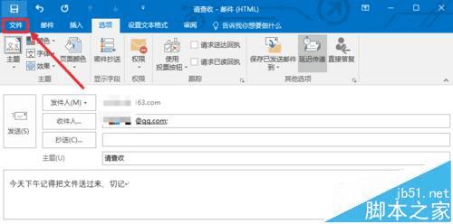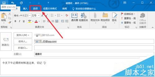2、写好邮件以后,然后我们这时候点击上方的选项菜单打开进入。