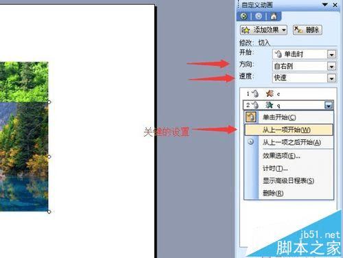 5、设置效果参数:方向--设置为到左侧;速度--根据自己喜欢选择