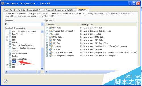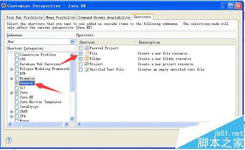 3、Eclipse为我们提供了new菜单的设置项,可以按照自己的喜好和常用工具来设置。如下图: