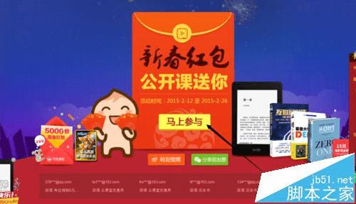 2、进入红包界面后,点击马上参与,从下图这些课程后,选择一个领红包。