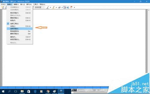 1、打开笔记本文档,找到空白页,在"编辑"选项下拉菜单底部里找到"选择页面"这一项,点击,然后空白页周围出现虚线,如下图: