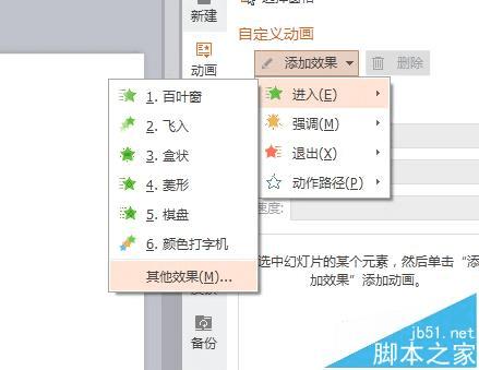 4、然后在右侧菜单栏中点击“添加效果-进入-其他效果”,然后找到颜色打印机,点击确定。