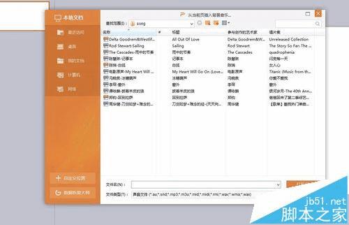 4、点击背景音乐文件,弹出从当前页插入背景音乐对话框,如图所示: