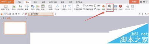 3、在插入菜单下找到插入背景音乐选项,如图所示: