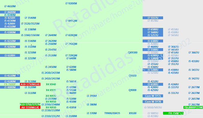 CPU天梯图2016最新完整版(看不清吗 点此看大图)(含桌面+移动笔记本CPU天梯图)