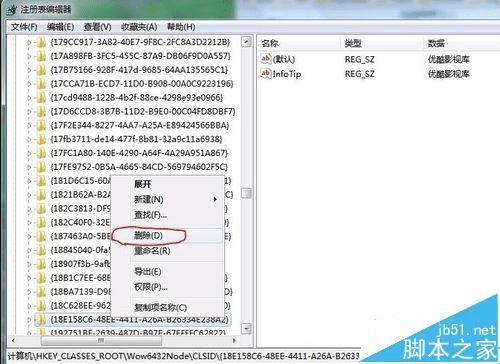 5、查找到后,直接删除包含此关键字的条目。右键点击-删除-是。