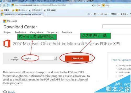 3、根据提示继续点击“访问适用于2007Microsoft Office 程序的"Microsoft Save as PDFor XPS“加载项,并按照该网页上的说明操作”,如图