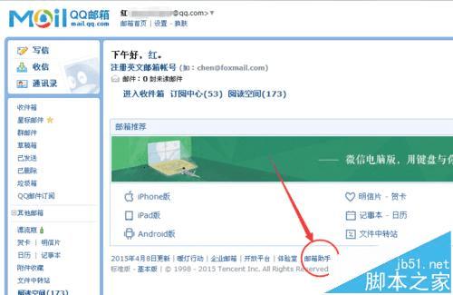 1、登录你的QQ邮箱,登录的方式自己选择,直接用QQ邮箱网页登录或者是从QQ面板上进行。在最下面找到【邮箱助手】,并点击进入。
