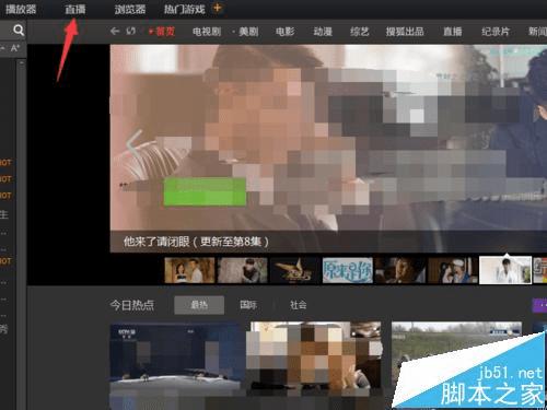 2、在菜单栏中,我们可以看到一个直播选项,我们点击一下。
