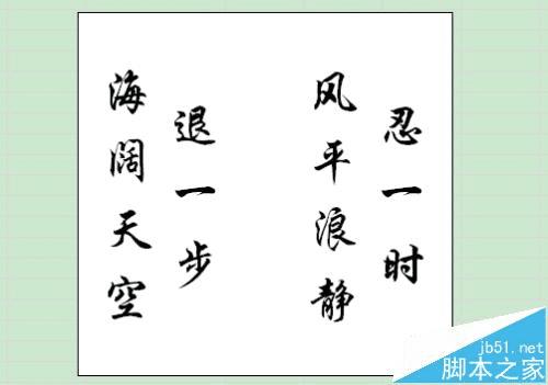 2、点击鼠标左键,拖动鼠标拉出我们的“文本框”,在文本框中输入我们的“文字内容”(如:忍一时,风平浪静;退一步,海阔天空)。然后对文字内容进行调整。如图所示;