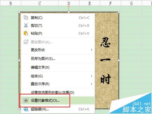 5、要是觉得我们选择的纹理效果颜色太深的话,我们可以设置一下它的透明度。选中文本框,点击鼠标右键,在弹出的选项栏中点击“设置对象格式(0)”选项。如图所示;