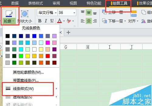 7、修改纹理效果的透明度以后。接下来我们就要为文本框来添加一个合适的边框。选中文本框,点击标题菜单栏的“绘制工具”选项,再点击绘制工具选项栏下的“轮廓”选项的倒三角图标按钮,在弹出的选项栏中点击“线条样式(T)”,在线条样式的子选项栏中点击“6磅”选项。如图所示;