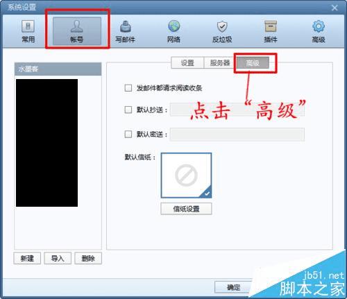 5、在“帐号”栏下方的设置中,找到“高级”,如下图所示: