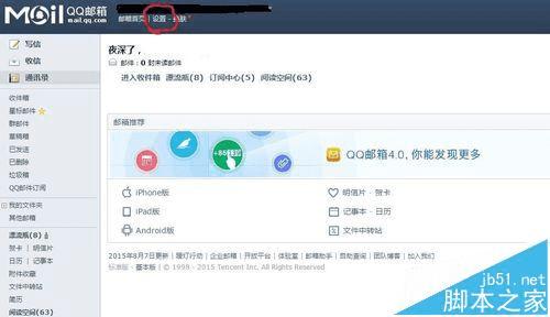 1、登录QQ邮箱,点击“设置”选项。