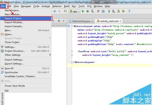 2、点击“File”的按钮,然后选择“Import Project”,如图: