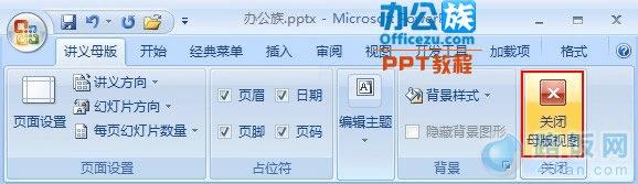 3、 单击“讲义母版视图”工具栏中的“关闭母版视图”按钮。