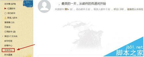 1、首先用自己账号登陆163邮箱,登陆邮箱以后,点击左侧的文件中心。