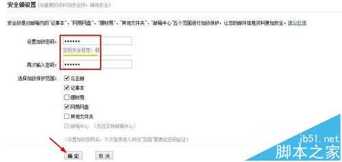 7、这时候,我们设置安全锁的密码,以及保护的范围,选择网盘确定即可。