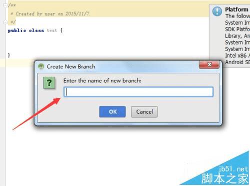 3、在create new branch的需要进行输入分支的昵称,昵称输入完成之后,点击“ok”。