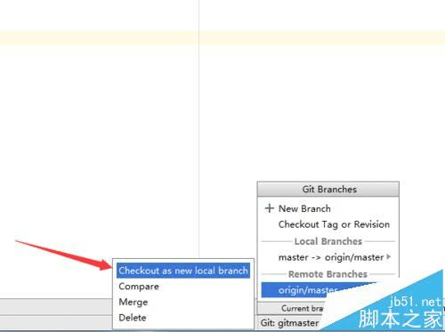 6、会弹出一个下一级的菜单中,选中“checkout as new local branch”的选项。