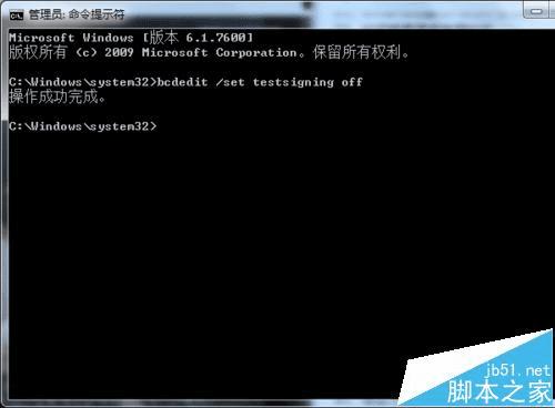 5、打开了命令的窗口,只需在命令的窗口中直接输入bcdedit /set testsigning off,并提示操作成功完成。