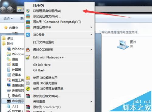 3、右键完成之后会弹出下拉的菜单中,可以看到为“以管理员身份运行”选项,点击完成之后。