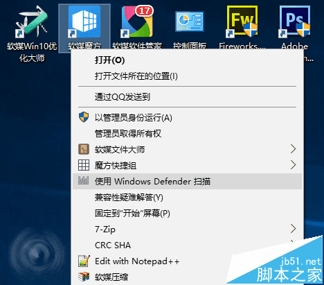 Win10内置杀软Windows Defender从右键菜单扫描项去掉的方法