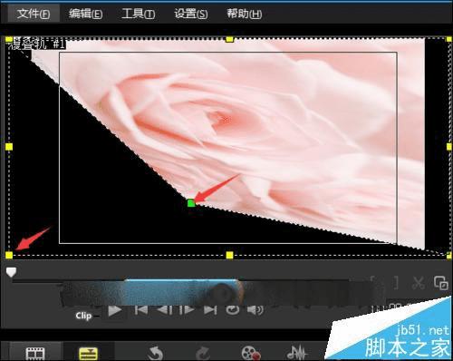 9、把它的位置固定在预览窗口的右上角。接下来把右下角的这个绿色的点击也把它移动到窗口的右下角。在移动点的时候可以准确一些。和上面的线大致一致.