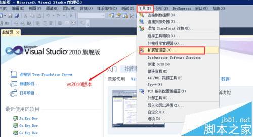 1、在VS2013的菜单栏中,点击【工具->扩展和更新】,如果您用的是VS2010,那么清点击【工具->扩展管理器】按钮
