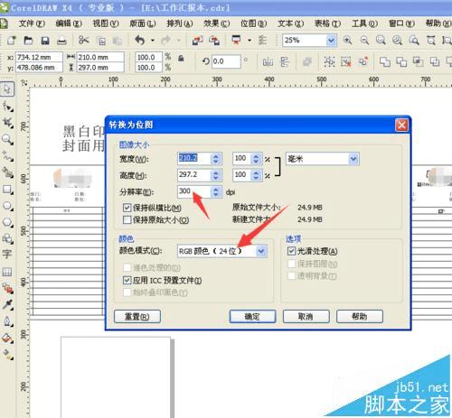 7、分辨率默认300,适合打印,RGB颜色(24位),点击确认;