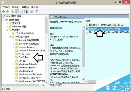 6、依次定位到:计算机配置→管理模板→Windows组件→OneDrive→双击左边的禁止使用OneDrive。