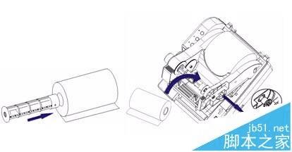 1、拿出色带芯及色带,依照图中所指示的方向,把色带芯轴插入碳带轴心中;色带绕向如图二进行操作